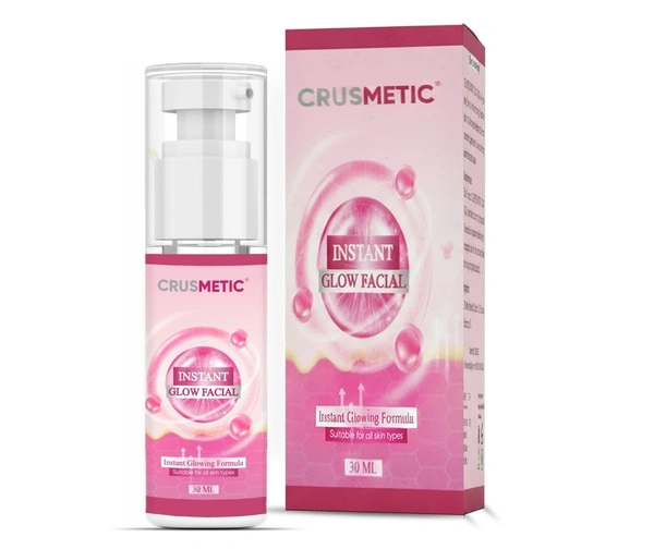 How To Use - Take 7-8 drops of CRUSMETIC INSTANT GLOW FACIAL and take equal quantity of Face wash or Aloe Vera Gel. Mix it and gently massage for over 5 mins. Wash with water & see the change.(for good results use daily).